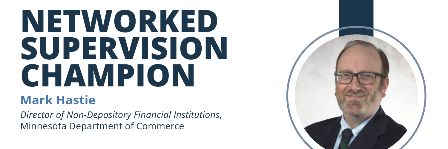 The CSBS Networked Supervision Champions program recognizes state agency staff who are going above and beyond to empower the multistate network for better financial supervision and industry compliance. Congratulations Mark Hastie!