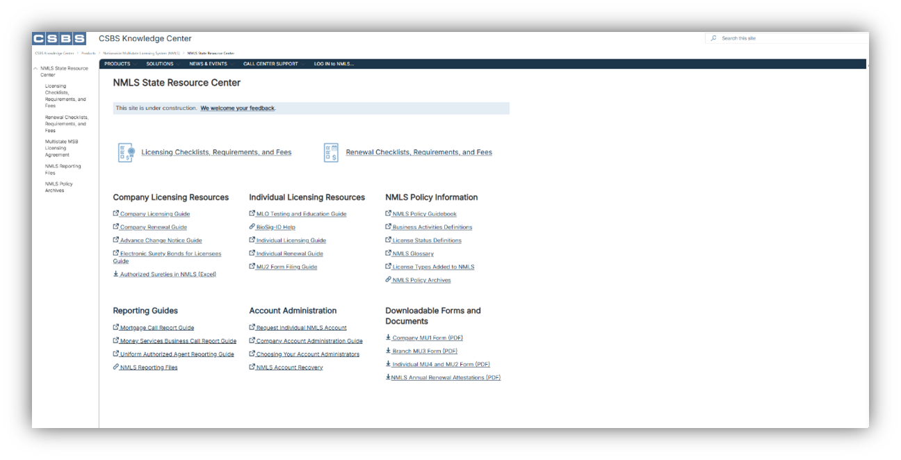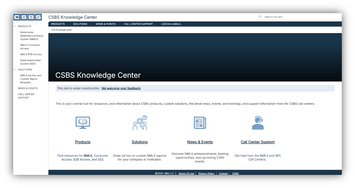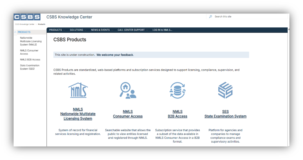 The redesigned Resource Center will reorganize all CSBS product knowledge in one comprehensive site, including NMLS, SES, and NMLS Consumer Access.