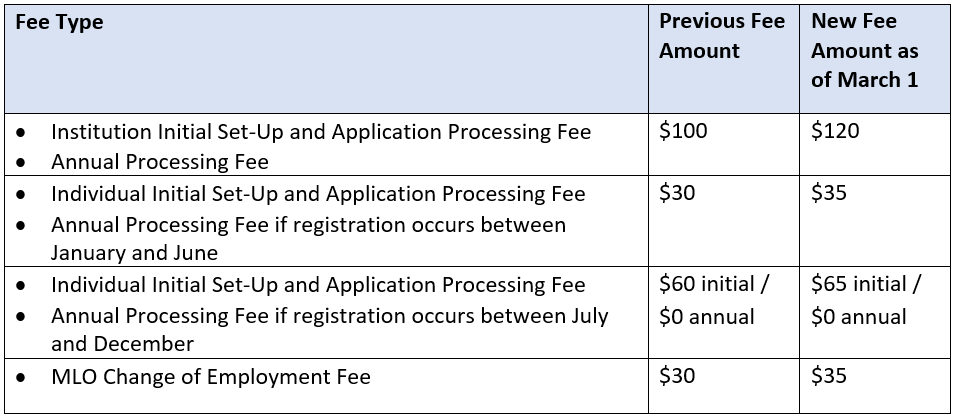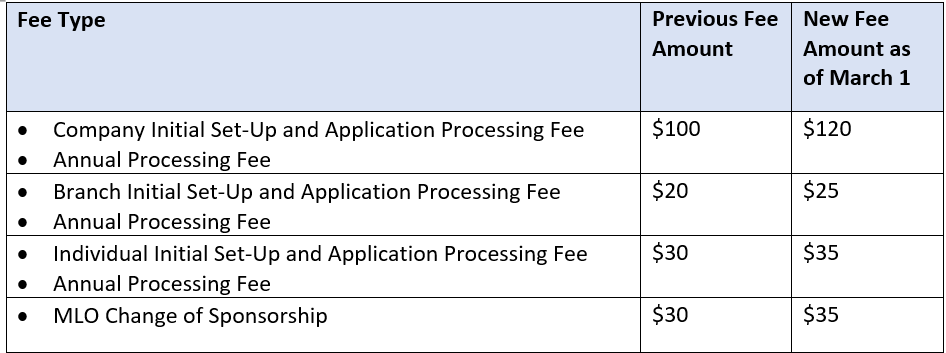 Reminder – NMLS Processing Fee Increase Takes Effect March 1